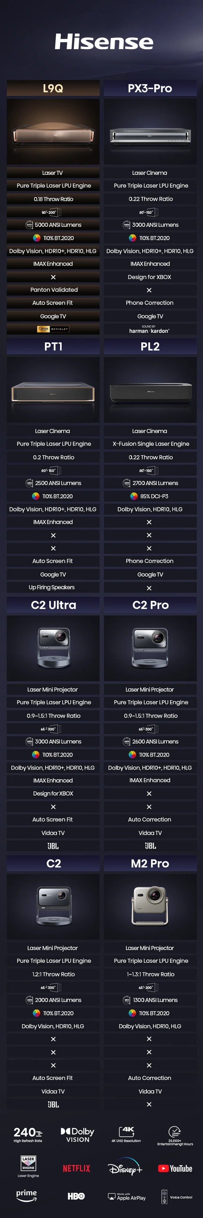 Hisense C2 4k UHD Triple Laser Mini Projector (up to 300")