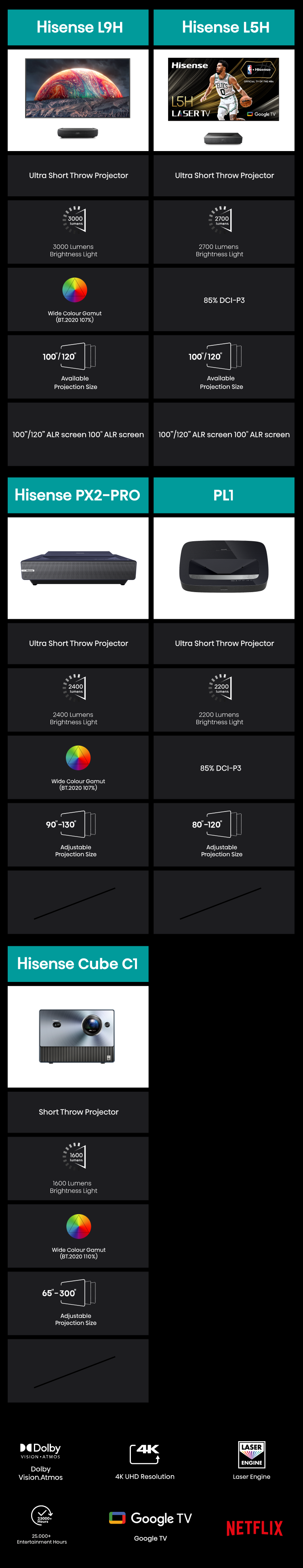 Check out our limited time deals on Hisense projectors and TVs. Hisense provides premium entertainment at an unbeatable price.