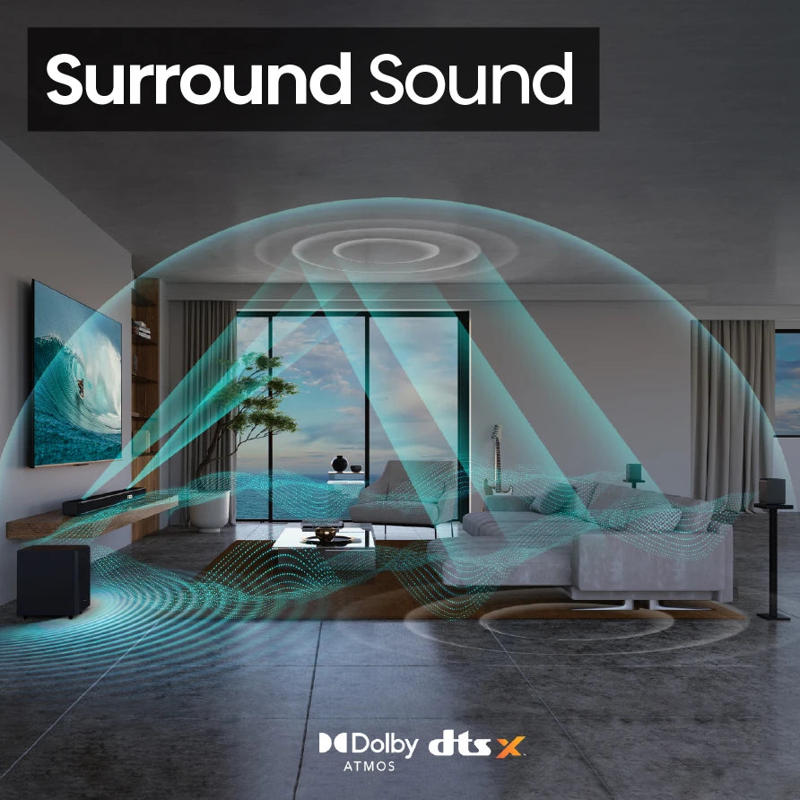 7 Speakers deliver a whopping max 440W audio power of wall bouncing immersive sound.