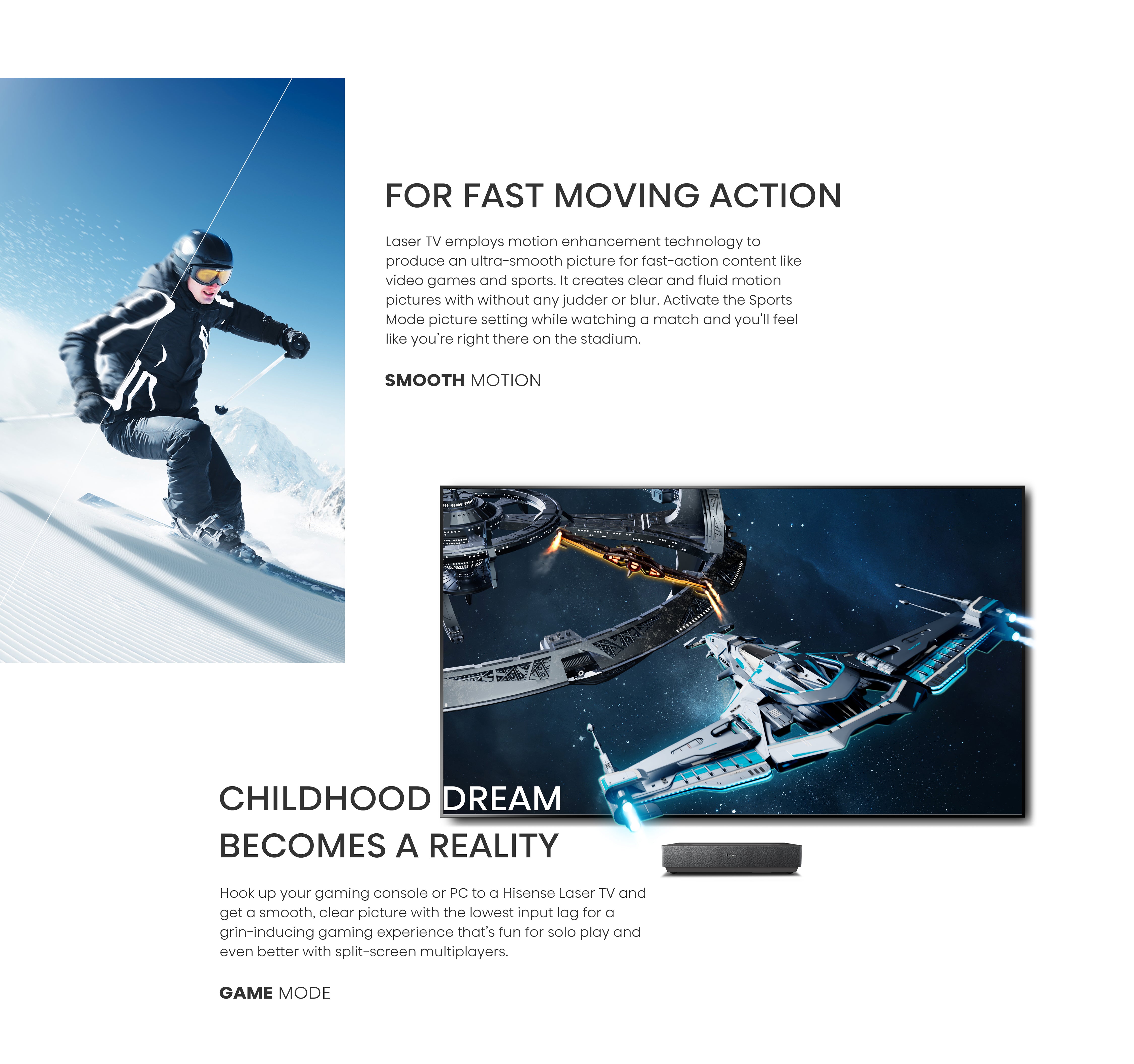 Never miss a moment of action. Whether it’s sports, games, or action films, Hisense Laser TV is going to give you a buttery-smooth and crystal-clear picture.