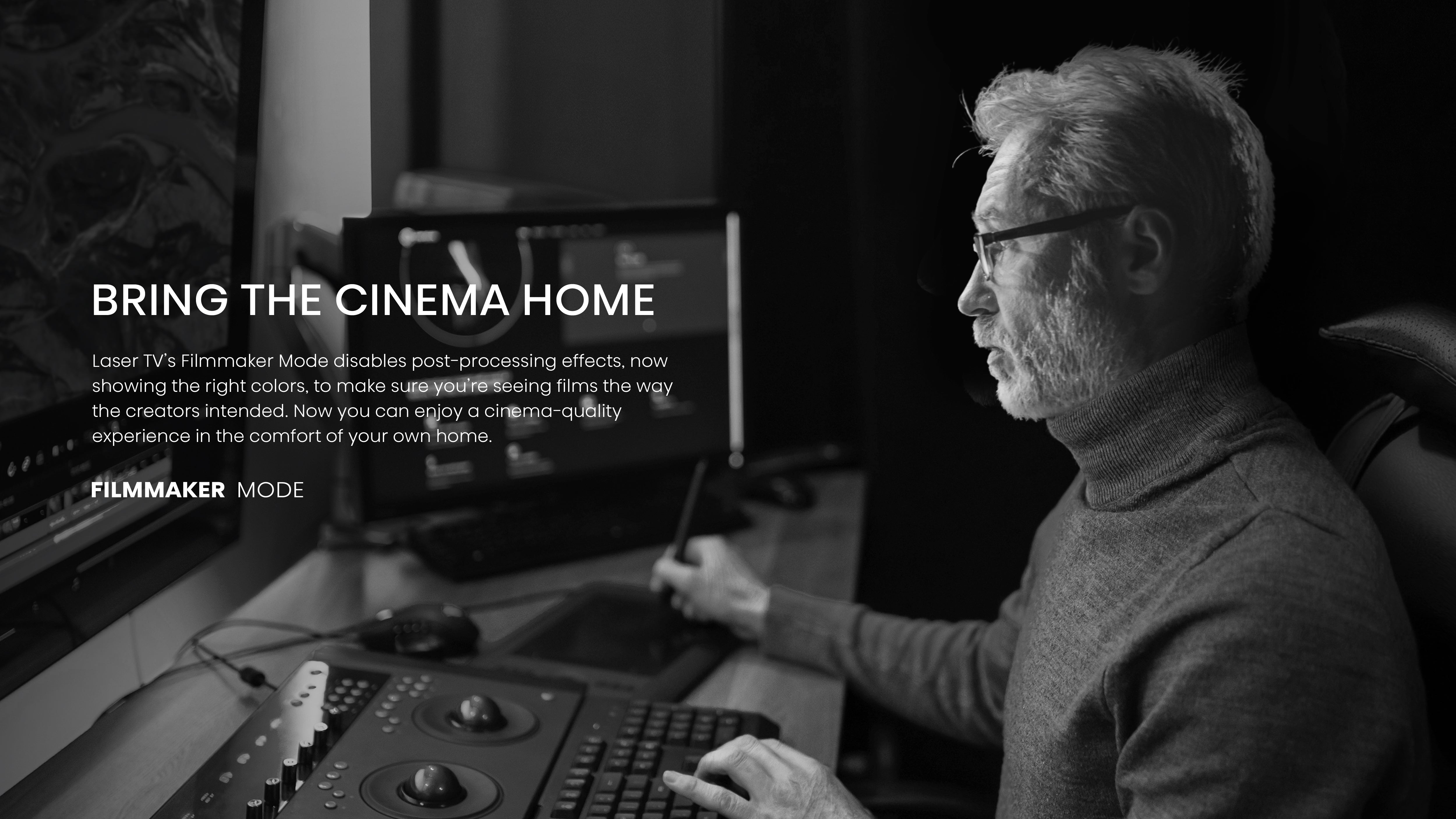 Watch your movies and TV shows the way the filmmaker intended. Filmmaker Mode adjusts your video to its original settings to see and hear details like the sound, aspect ratio, color, frame rate, and more as it was originally envisioned for the most authentic display.