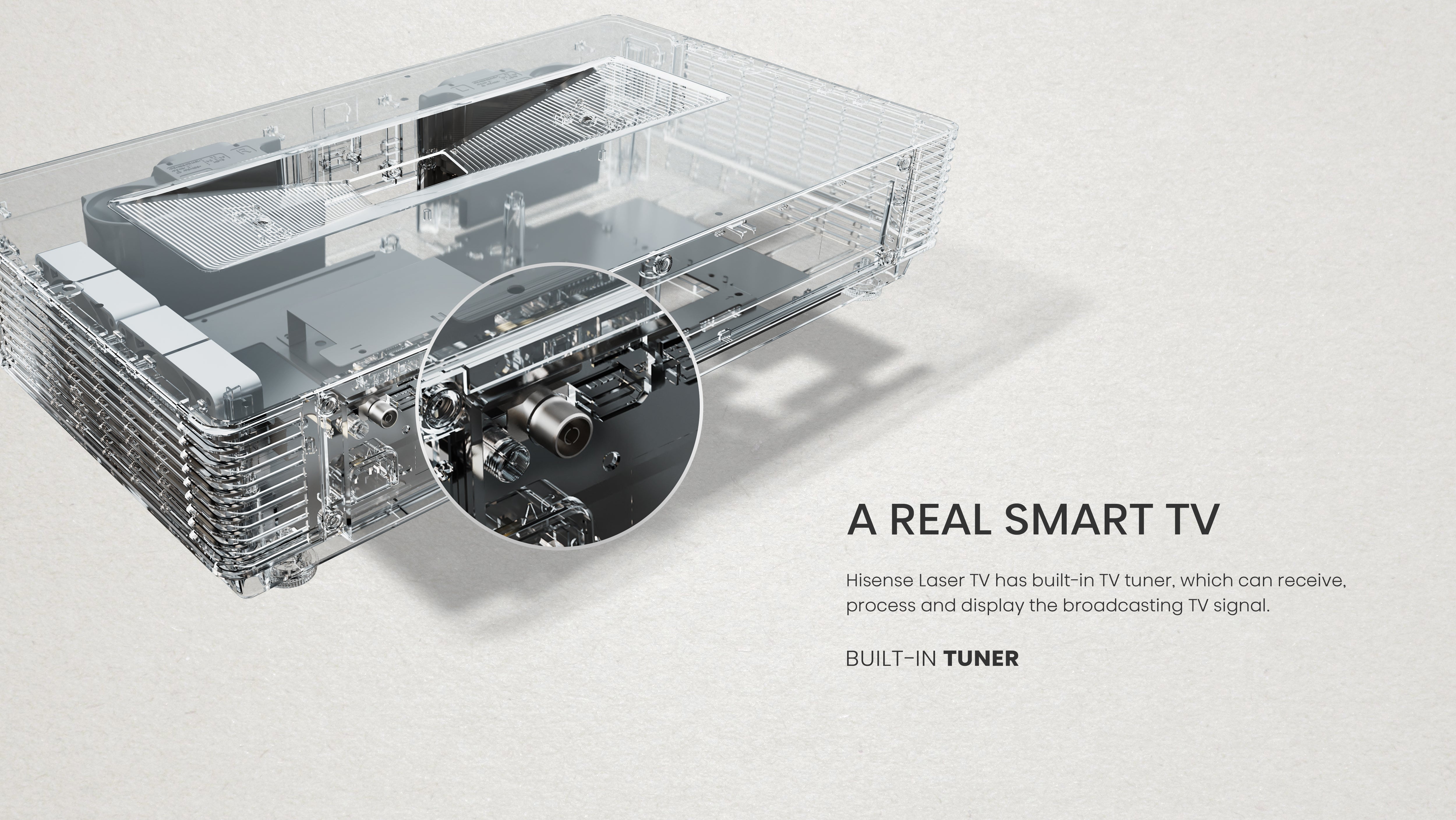 Hisense Laser TV has built-in TV tuner, which can receive, process and display the broadcasting TV signal.