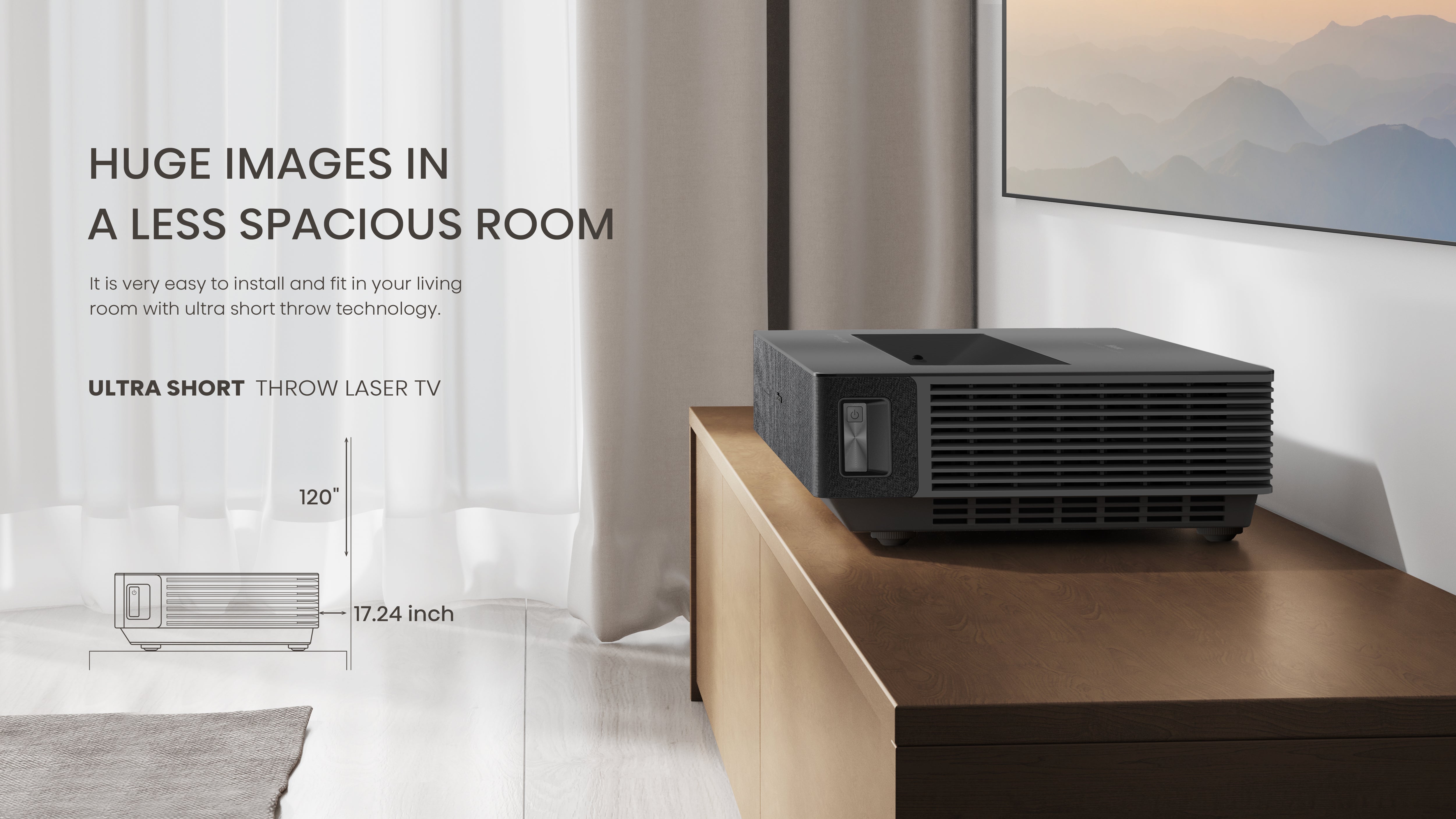 At mere inches from the wall, the laser console casts a massive projection in beautiful 4K resolution.