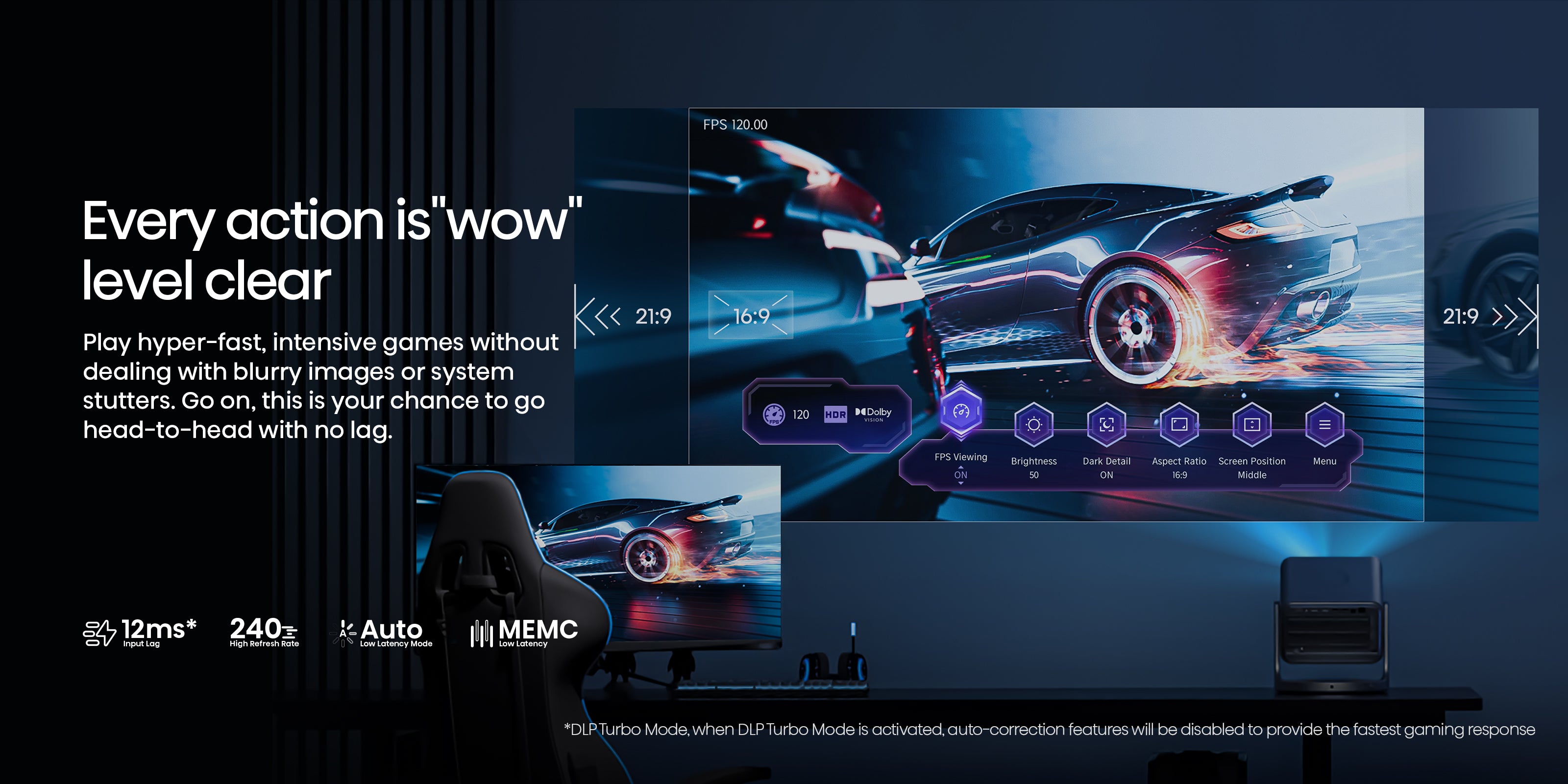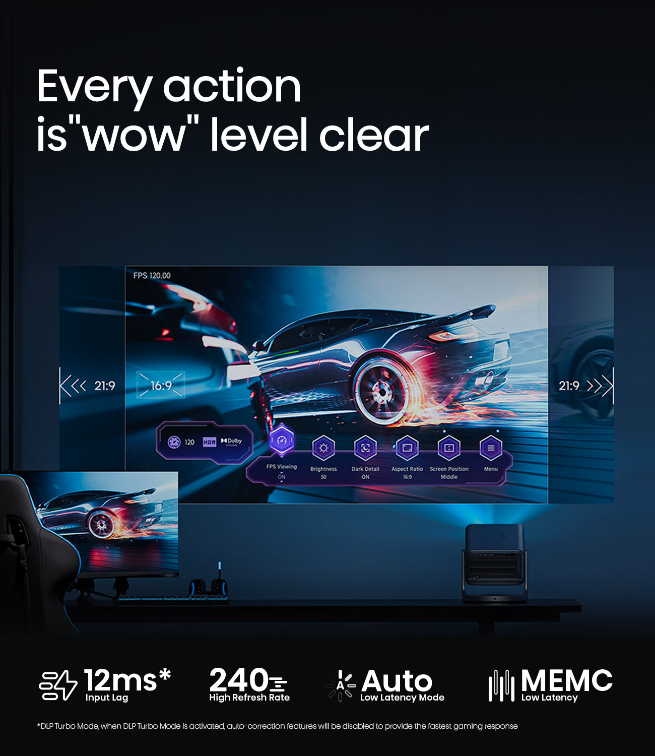 Delivers precise, sharp, proportionate projected images without manual adjustments for the ultimate viewing experience and flexible placement.