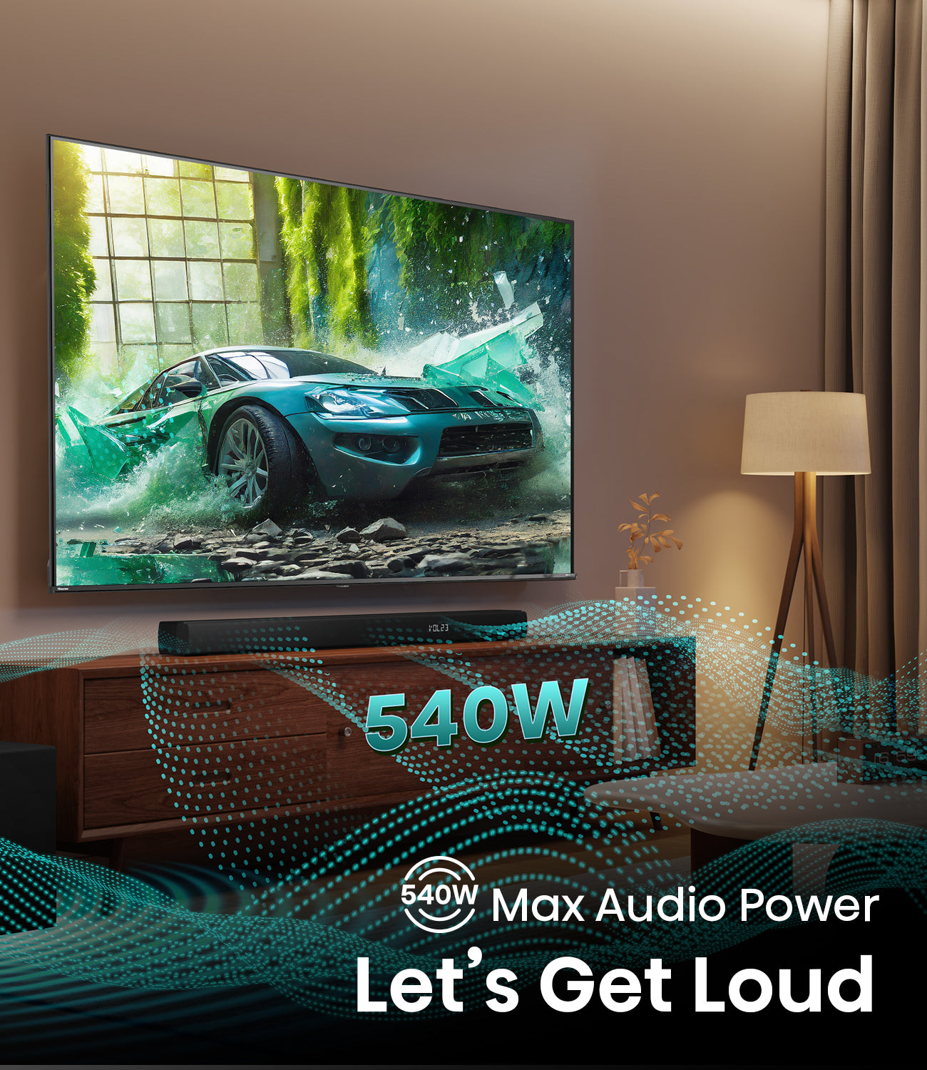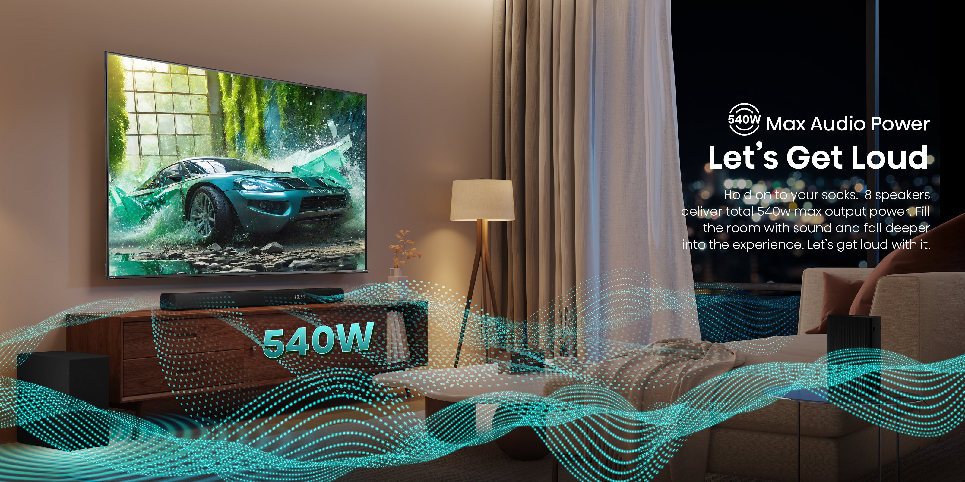 Hold on to your socks. 8 speakers deliver total 540w max output power. Fill the room with sound and fall deeper into the experience. Let’s get loud with it.