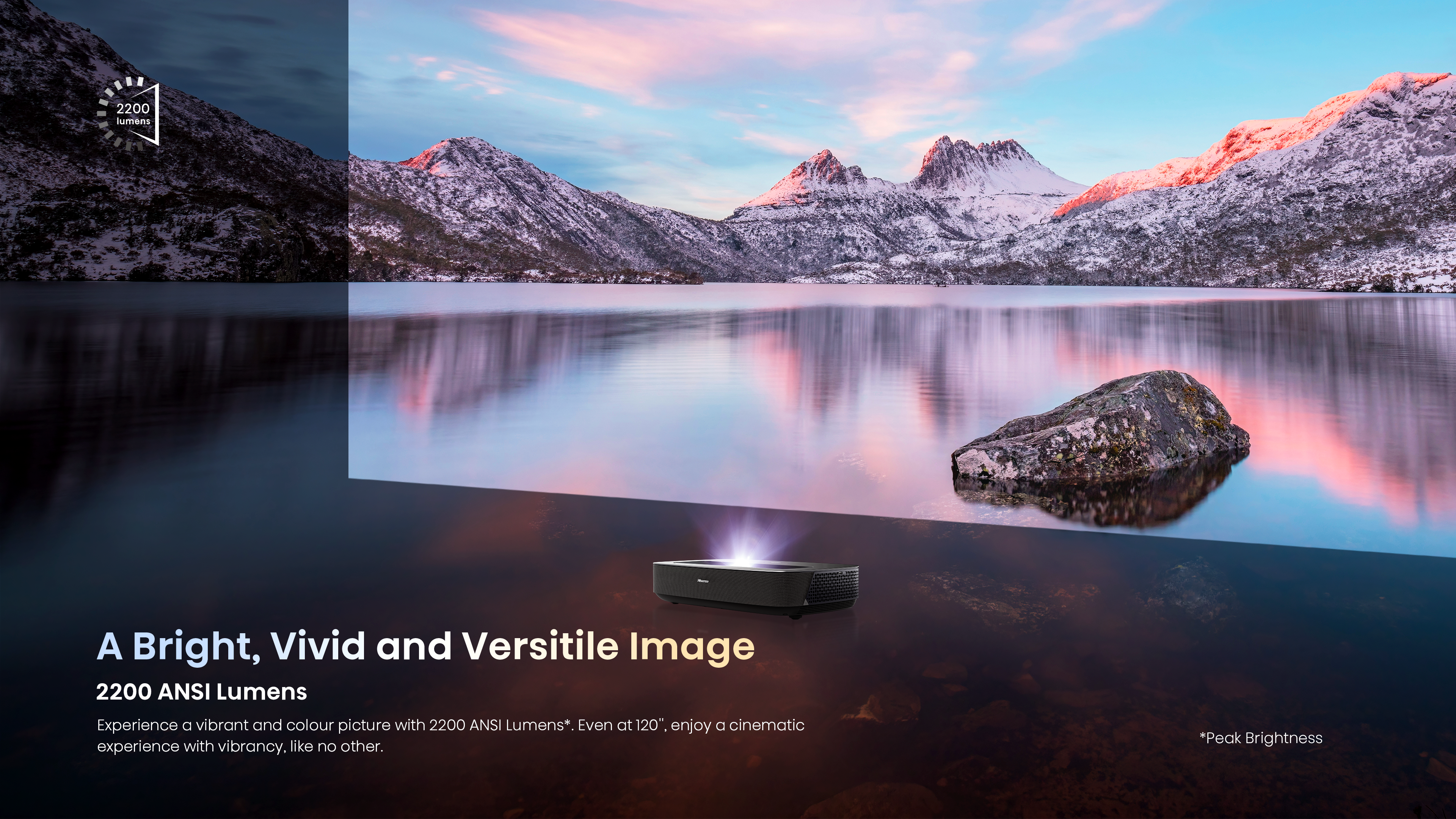 2200 ANSI Lumens Brightness together with an ALR* screen ensures a bright, vivid, and colorful viewing experience.