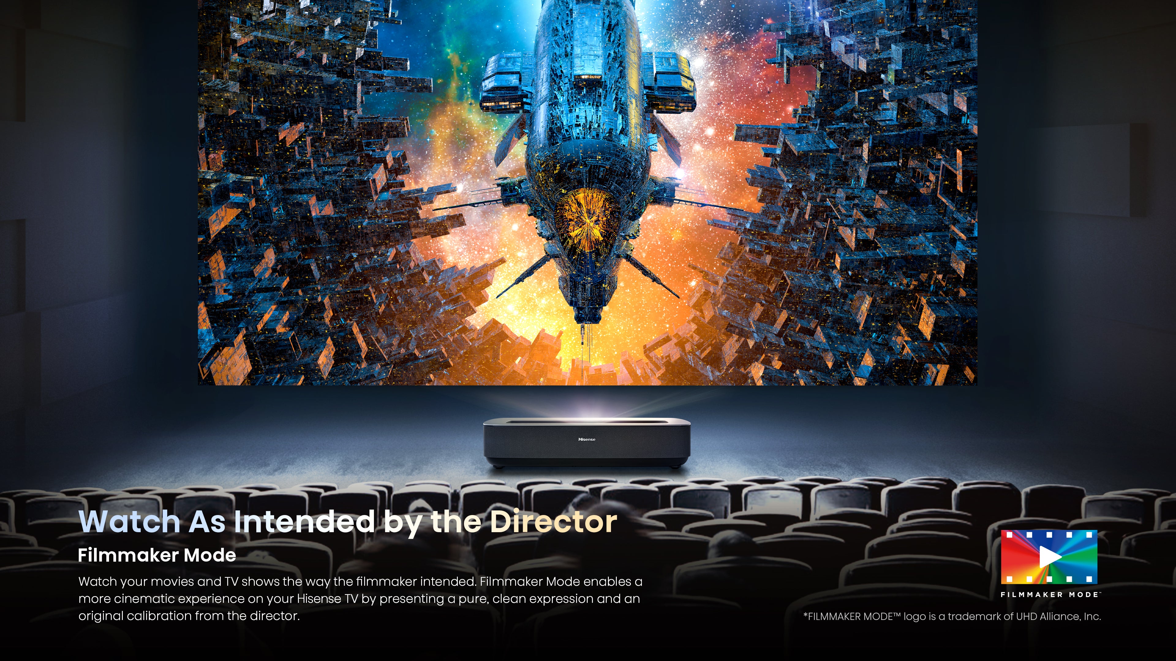 Watch your movies and TV shows the way the filmmaker intended. Filmmaker Mode adjusts your video to its original settings to see and hear details like the sound, aspect ratio, color, frame rate, and more as it was originally envisioned for the most authentic display.