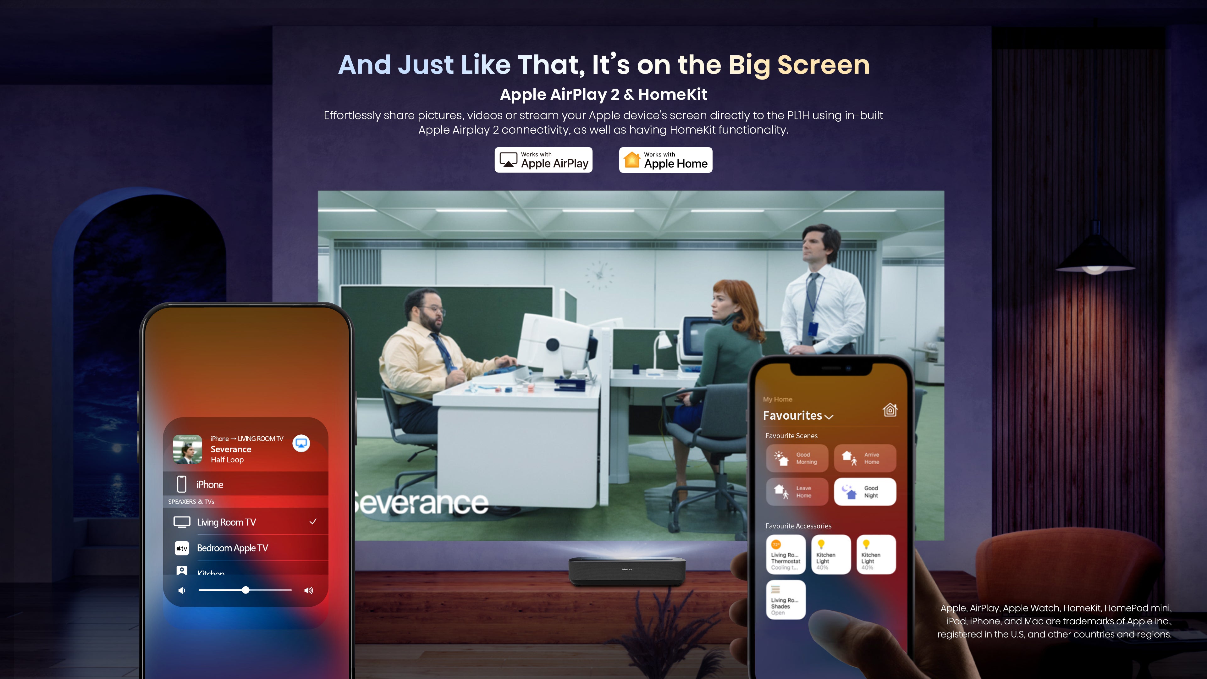 Effortlessly share pictures, videos or stream your Apple device's screen directly to the PL1H using in-built Apple Airplay 2 connectivity, as well as having HomeKit functionality.