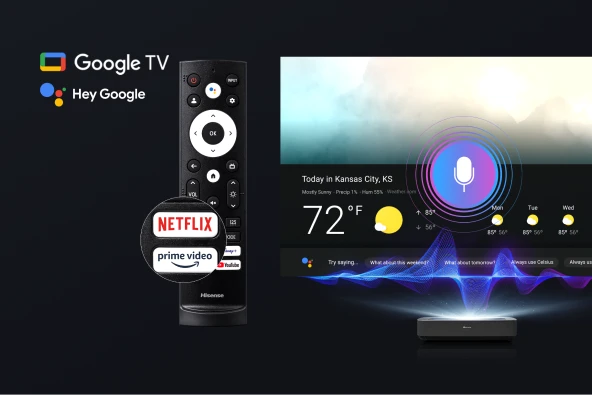 Your TV is more helpful than ever. Use your voice to find movies, stream apps, play music and control the TV. Ask Google to find a specific title, search by genre, or get personalized recommendations. Even get answers on screen, control smart home devices, and more. Just say "Hey Google" to get started.