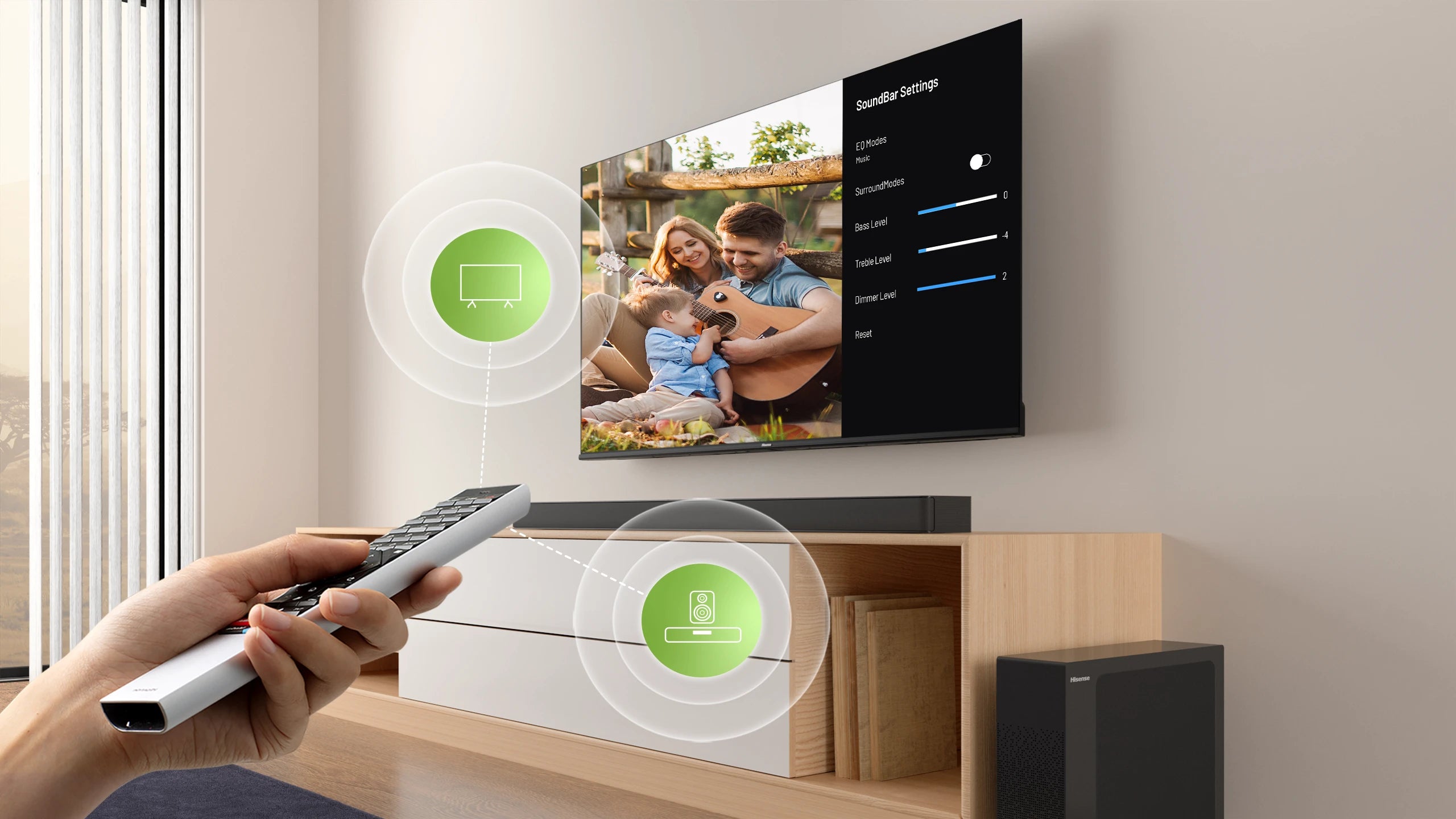 Use only one, user-friendly remote to adjust Soundbar’s setting from the TV.
