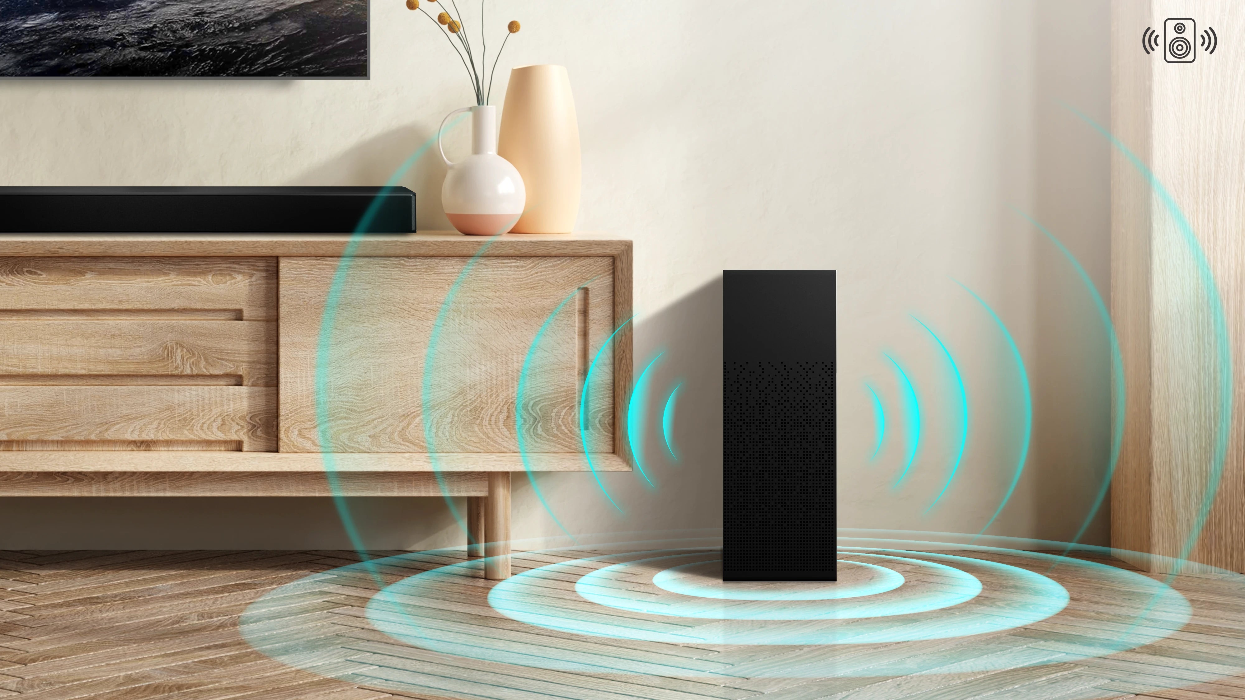 With its ultra-slim design, the 120W powerful subwoofer can easily fit into any space.